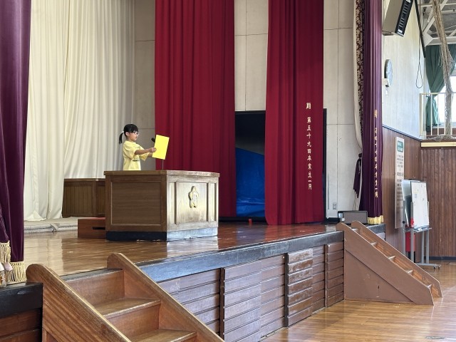 10月10日(金)に、体育館で前期終業式が行われました。1年生と4年生の児童による作文発表があり、前期にがんばったことや後期にがんばりたいことの発表がありました。前期の振り返りをもとに後期も「たい!よう!」を大切にしながらがんばっていきましょう。