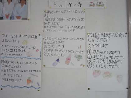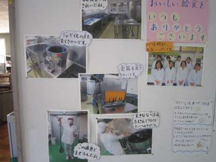 おいしい給食に感謝です 公開日 2023/02/03 更新日 2023/02/03 その他 いつもおいしい中根小学校の学校給食。その給食について、給食委員会の児童が調理員さんの仕事を取材し、給食のありがたさと、調理の大変さや気を付けていることなどをまとめました。いつもおいしい給食を作ってくださる調理員の方への感謝の気持ちと、給食をしっかり食べようというメッセージが込められています。1階の校長室脇に掲示してありますので、ご来校の際は、是非ご覧ください。