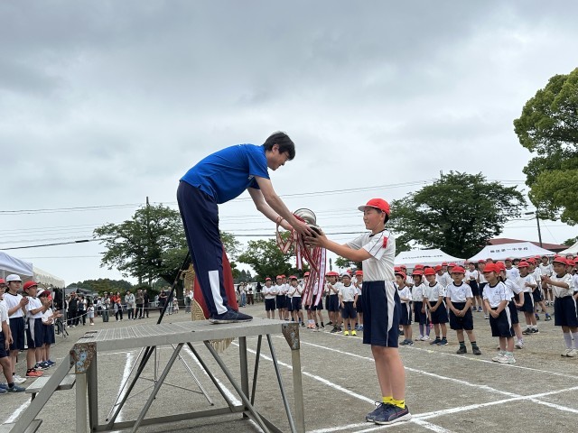 あいにくの雨で順延となった運動会でしたが、18日(日)の運動会は、「みんなでがんばって優勝したい!」「今までの練習を発揮しよう!」といったたいようがいっぱいの運動会となりました。どの学年の子も笑顔や自信にあふれる表情で競技や演技に取り組む姿が印象的でした。5・6年生は学校のために練習・準備・本番と係の仕事に一生懸命に取り組んでくれました。上級生のかっこいい姿は、下級生たちの憧れとなって受け継がれていくはずです。今後の体育では、体力テストや水泳学習が予定されています。引き続き、みんなで体力アップしていきましょう!