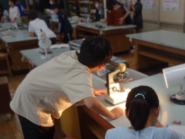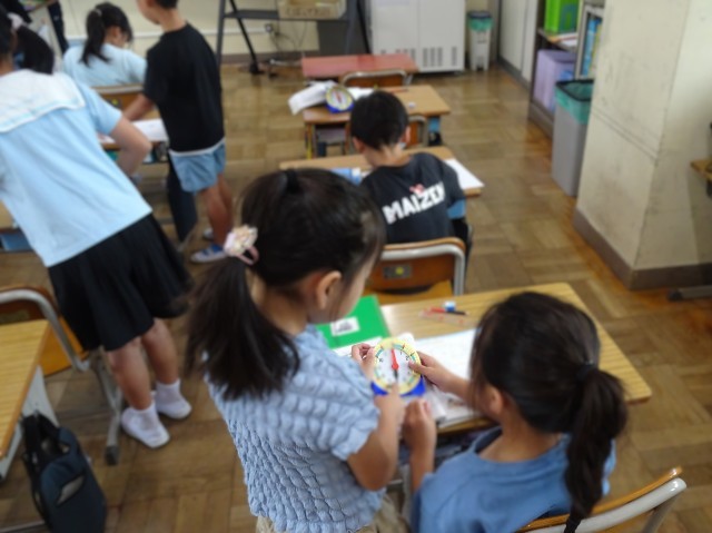 2年生が、算数で時刻の求め方の学習をしました。「〇時の□時間後のじこくは・・・」の問いに、時計の教材を使って、友達と相談しながら考えていました。5年生は、理科の学習で、メダカなどの魚が食べている水草を顕微鏡を使って調べました。倍率を上手に調節し、大きく見えた葉の繊維に驚きの声が上がりました。どのグループも顕微鏡の世界に夢中でした。