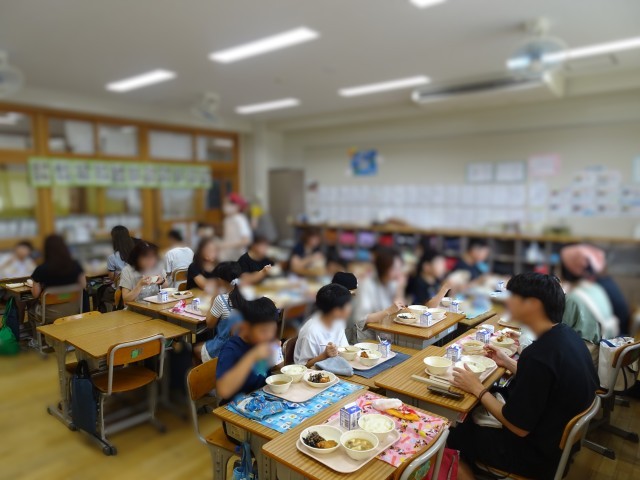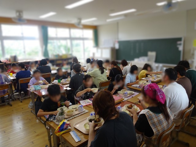 5年生の親子給食を実施しました。本日のメニューは「鶏肉の唐揚げ、ひじきの炒め煮、なめこ汁、ごはん、牛乳」で、子供たちの人気メニューの一つです。親子で向かい合って談笑しながら楽しく給食を食べていました。学年委員の皆様、受付や配膳等、ご協力ありがとうございました。