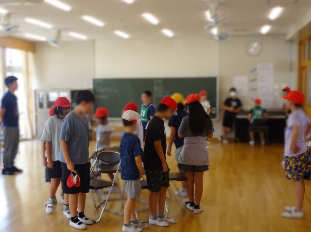 今日の昼休みは、たてわり班遊びの日でした。6年生が中心となって、室内での遊びを行いました。イス取りゲームやハンカチ落とし、フルーツバスケットなど、どの班もみんなで楽しく遊びました。