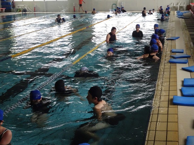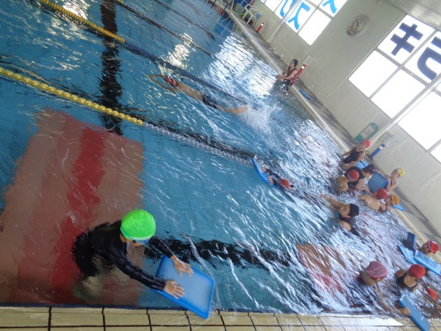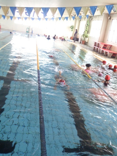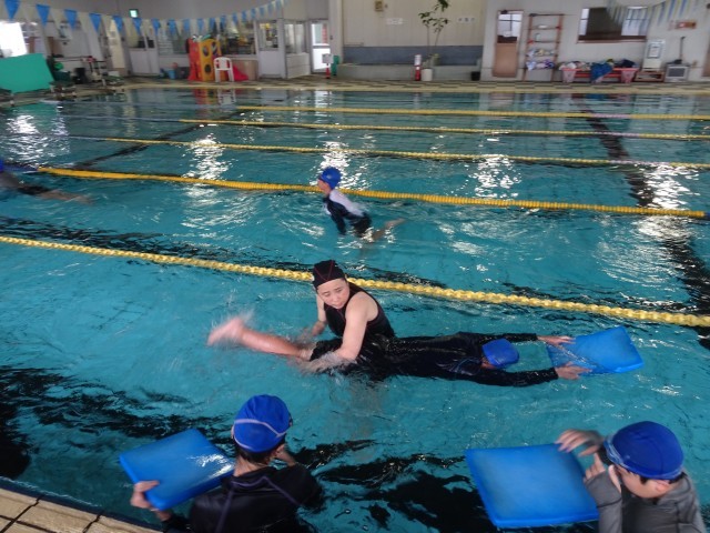 やっと秋を感じられる1日となりました。今日は、2,4,6年生が水泳学習を行いました。1回目の反省をもとにテキパキと準備する姿が見られました。習熟度別のグループごとに、ビート板を使いながらインストラクターから指導を受けていました。泳ぐフォームがきれいになった児童が増えてきています。