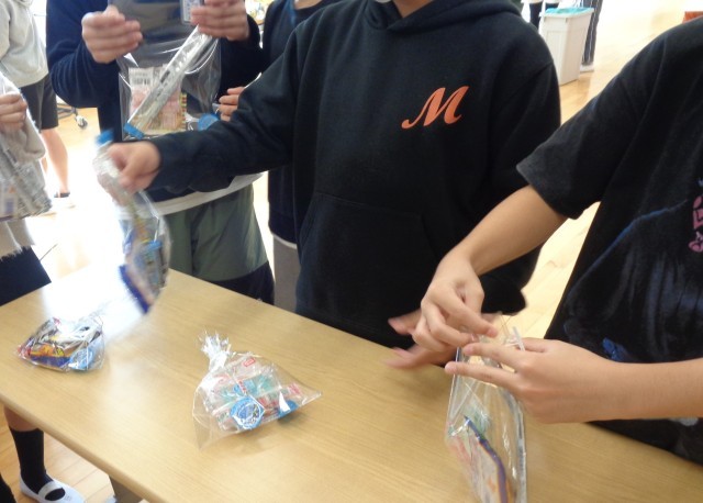 今年のふるさとまつりの新たな取り組みとして、6年生が駄菓子屋さんを開きます。基本的に児童が購入しますが、多めに準備してあるので保護者の方も購入いただけると思います。駄菓子はすべて袋に入っており、1袋100円分で児童は金券を使います。これは放課後NPO法人が行っている活動で、いくらで仕入れて、いくらで売るか、いくら儲けるか、どうやってたくさん売るかなど、お金の勉強、社会のしくみについての勉強にもなります。初の試みです。お楽しみに!