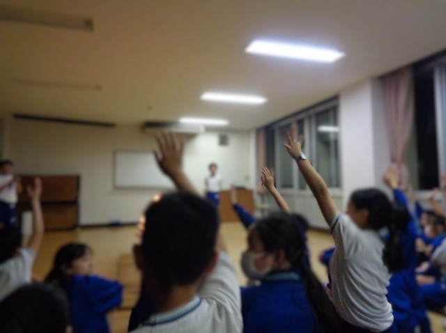 11月11日(火)・12日(水)の2日間、5年生が常陸太田市の西山研修所にて、1泊2日の宿泊学習を行いました。1日目の午前は、焼き板体験をしました。杉の板を焼いてよく磨き、そこにアクリル絵の具を使ってデザインし、世界に一つだけの素敵な作品が出来上がりました。午後は、ウォークラリーで、班の仲間と一緒にチェックポイントを探しながら山道を歩きました。夕食後には、キャンドルサービスとレクリエーションを実施しました。第1部のキャンドルサービスでは厳かな雰囲気の中で、点火の式を行いました。第2部では、ダンスや歌で盛り上がったあと、クイズやゲームで更に盛り上がり、みんなが笑顔になりました。