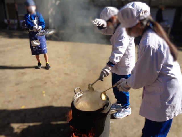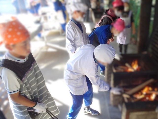 宿泊学習2日目は、6時に起床して朝の集いからスタートしました。朝食後は、いよいよ、ドキドキとわくわくの飯ごうでのご飯炊きとカレー作りです。班の友達と役割を分担し、かまどに火をおこしたり、米を研いだり野菜を切ったりと、みんな率先して活動していました。頑張った甲斐あって、どの班も失敗することなく、おいしいご飯とカレーが完成しました。自分たちで作った料理の味は格別だったことでしょう。
