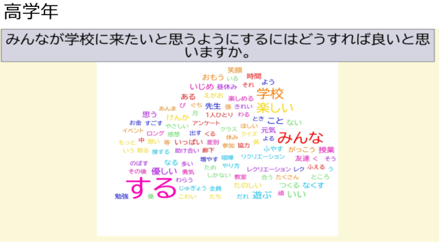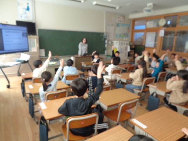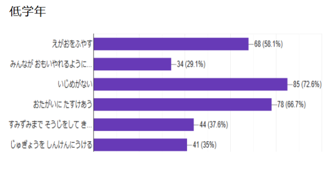 事前に全校児童から集めた「学校をよくするためのアンケート」の結果をもとに、みんなでよりよい勝倉小にしましょうと呼びかけました。また、学校内での様々な場面を想定し、「こんなときどうする?」と質問すると、各クラスの児童は積極的に答えていました。