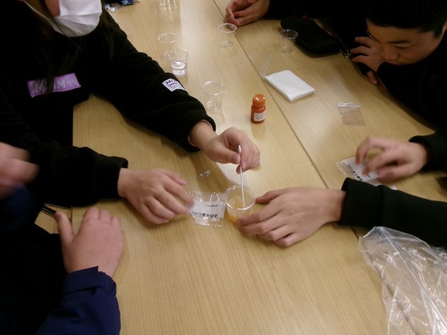 学校薬剤師の先生にお越しいただき、おくすり教室を実施しました。薬物乱用や、オーバードーズなどの課題もあり、子供たちを取り巻く薬に関する現状は、ここ数年で大きく変わっています。今日は、薬の成分と、お茶やグレープフルーツジュースが反応するとどうなるか等を実験しながら、正しい薬の飲み方や薬の効果、副作用について学習しました。子供たちからは「へーっ!?」や「なるほど」といった言葉がたくさん出ていました。
