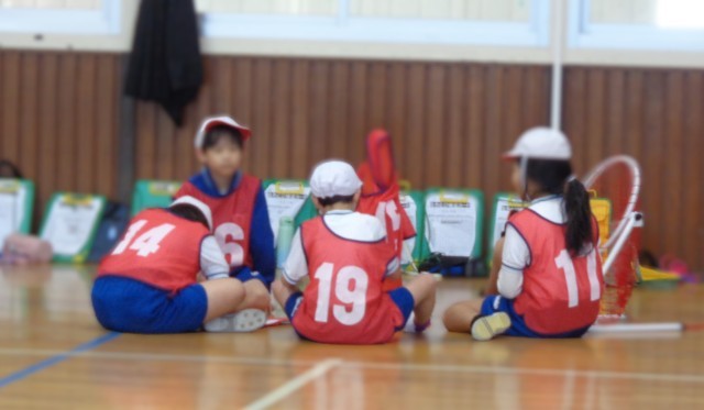 試合の合間の作戦タイムでも、活発に意見を出し合い、後半戦に生かしています。