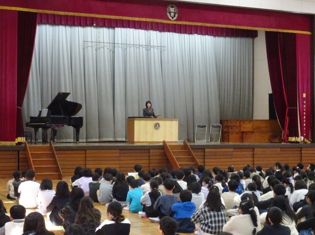 修了式では、代表児童のふりかえりや校長先生の話を、しっかり聞くことができました。話し手の方を向いて真剣に聞く姿や、修了証授与での各学級の堂々とした返事に、この1年間の成長を感じました。