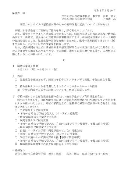 新型コロナウイルス感染症対策のための臨時休業について(9月13日〜24日)