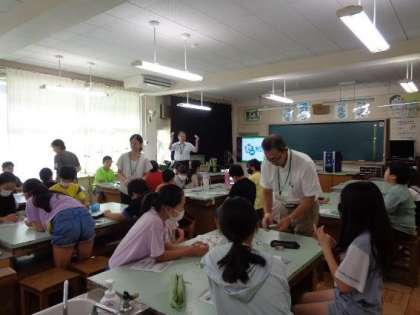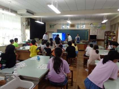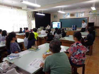 本日の2・3校時に、日立ハイテクさんによる電子顕微鏡出前授業がありました。対象は、5年生で、クラス毎に実施しました。見えないものを見てみることでどんな世界が広がるか確かめてみようという学習の目的で授業をしてくださいました。電子顕微鏡は、30,000倍まで拡大することを知り、子供たちはとても驚いていました。ハスの葉の水をはじく仕組みをまねすることで、ヨーグルトの付かない蓋ができたことや、蚊に刺されても痛くない仕組みをまねすることで、痛くない針ができたことを知りました。技術や道具の進歩によって見えないものが見えると“しくみ”や“形”がわかるようになり、社会を豊かにする新しい技術や製品が生まれることを学びました。日立ハイテクの皆さん、ありがとうございました。