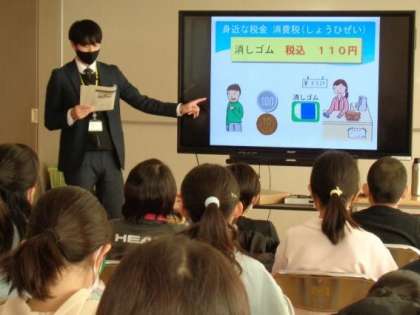 18日(月)の5校時に、6年生が租税教室を実施しました。講師は、市役所租税事務所の3名の方々です。安全で豊かな社会を築いていくために、重要な財源である税金についての知識と理解を深めることがねらいです。身の回りにはどんな税金があるか、何種類あるか、なぜ納めなければならないのか等について、学ぶことができました。