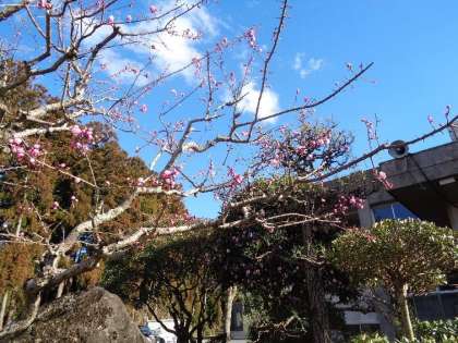 職員玄関付近にある紅梅です。白梅が咲き終わり、紅梅がかわいらしい花を咲かせ始めました。昨日は、北風の強い寒い1日でしたが、春は、一歩一歩近づいてきていますね。