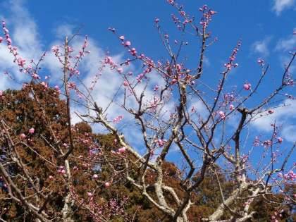 紅梅が咲き始めました