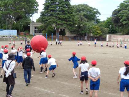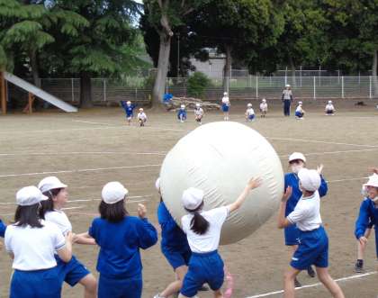 今日はお天気に恵まれ、どの学年もグランドで運動会の練習を行っていました。写真は4,5、6年生の大玉送りの様子です。思うように運ぶのはなかなか難しそうです。