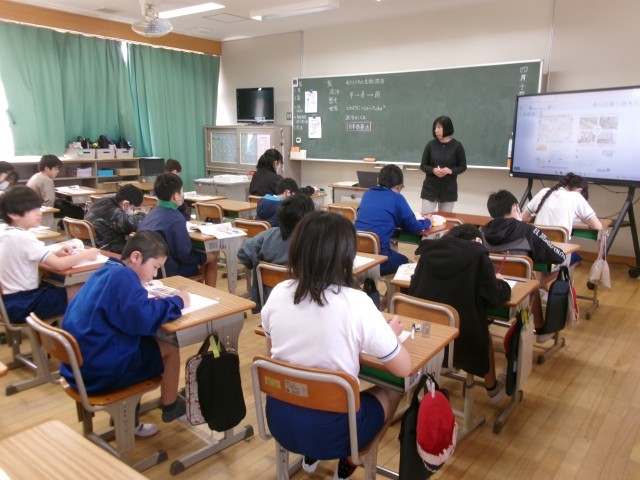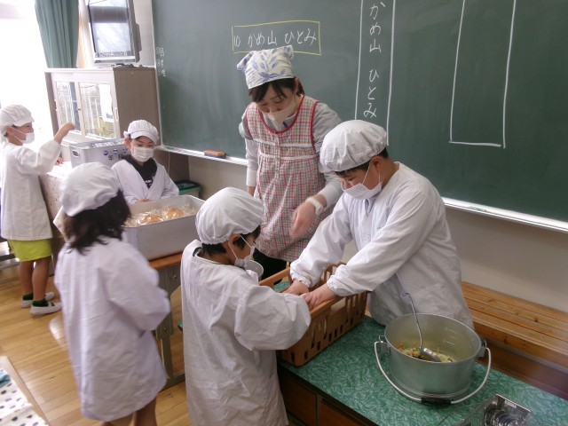 授業が始まりました。写真は6年生、2年生の授業の様子、3年生の給食準備の様子です。クラスで、係を決めたりルールを確認したりしています。授業ではあたりまえに電子黒板を使っていました。少しずつ新しいクラスや担任の先生に慣れてきたように感じます。