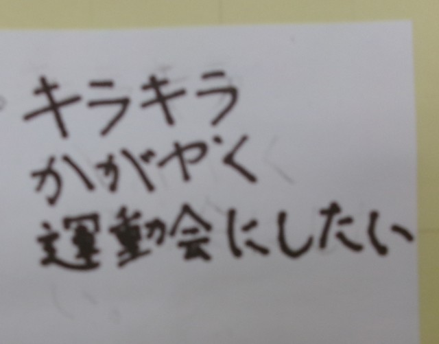 今年は、どんな運動会にしたいかを話し合い、そこからスローガンを決めていくことにしました。ころんでも泣かない、最後まであきらめない、思い出に残る・・など子供たちの思いは様々です。どの子にとっても楽しかった、と言える運動会にしたいと改めて思っています。
