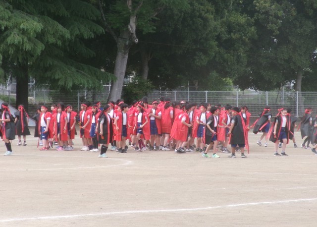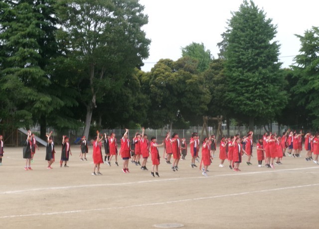 高学年の勝倉ソーラン、かっこよく仕上がってきました。やあっ!のかけ声にも気合いが入っています。