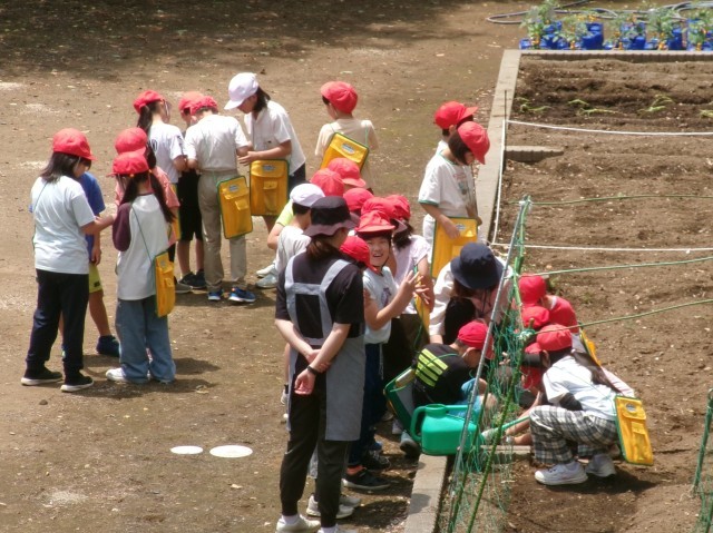 3年生が、理科の「昆虫の育ち方」の学習で、畑のキャベツの葉にモンシロチョウの卵がついているか、一生懸命探していました。キャベツの葉を虫かごに入れて、「ここにいっぱいついてるでしょ?」「見て見て!」と喜んで見せてくれました。教室で育てるのが楽しみです。