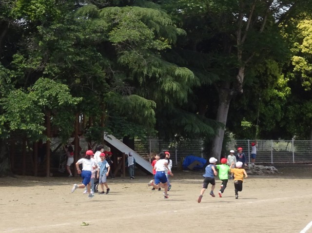 運動委員会の児童が、体力テストの記録向上を目指し希望者に特訓を行いました。今日は50m走の特訓の日で、腕の振り方や足の上げ方に気を付けながら、一生懸命走っていました。