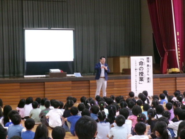 3,4時間目に、腰塚勇人さんの「命の授業」を実施しました。腰塚さんの講演は2400回以上になるそうです。子供たちは、いい表情でお話を聞いていました。笑いあり、時には厳しい言葉ありのお話に引き込まれていました。子供たちが、命の大切さや生きることの素晴らしさ、相手を大切にすることなどを、発達の段階に応じて感じてくれていたらうれしく思っています。感想等は、今後の学校だよりに掲載いたします。腰塚さん、ありがとうございました。