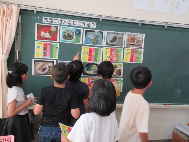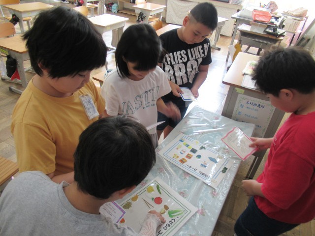 3年生では、「バランスのとれた食事」をテーマに、自分たちで食べたい昼食のメニューを選び、食材を買い物し、「体のちからになるもの」「体をつくるもの」「体のちょうしを整えるもの」の3つに食材を分けました。普段食べている食べ物がどのようなはたらきをしているか、楽しく学ぶことができました。