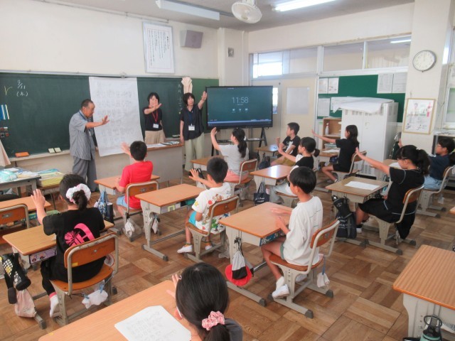 外部講師として4名の方を招いて、4年生が手話体験をしました。始めに講師の話を聞き、その後で手話のあいさつや指文字の指導を受けました。最後には、手話をしながら「ビリーブ」の歌をみんなで歌いました。子供たちは手話に興味をもち、楽しく活動することができました。