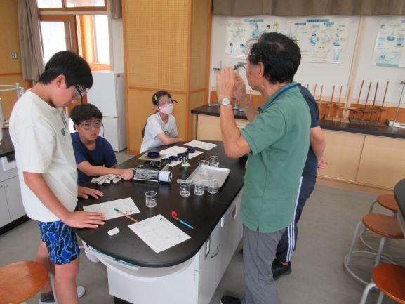 今日は二人の外部講師の先生による授業がありました。5年生は、日下部先生から毛筆習字を教わりました。一人一人が「希望」という文字をていねいに書いていました。6年生は金森先生から理科の授業を受けました。班ごとに分かれて、ガスコンロを使って水溶液を温める実験を行いました。専門の先生からは、新しい知識や技能を教わり、子供たちはとても満足した様子でした。