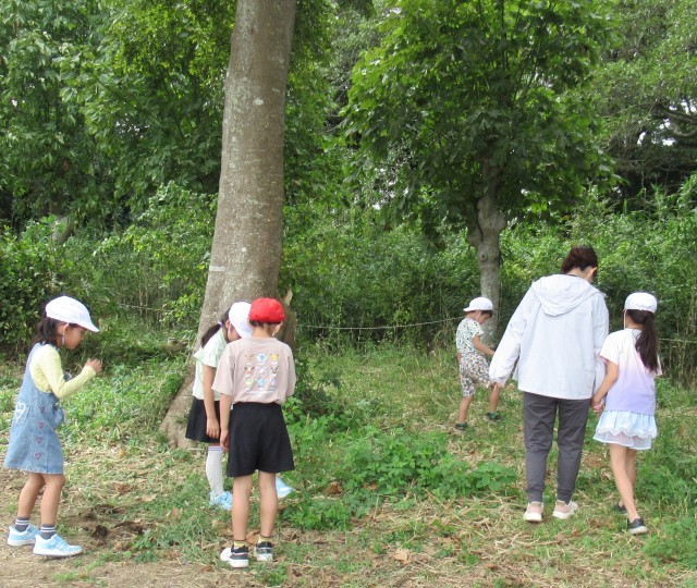 休み時間に低学年の児童が校庭で虫を探していました。草むらの中や木の周りをゆっくり歩きながら、バッタが跳ねたり、カナヘビが動いたりしている様子を見かけて、手を差し伸べて捕まえようとしていました。捕まえると、「ぼくが見つけたんだ」と嬉しそうに友達にも見せていました。