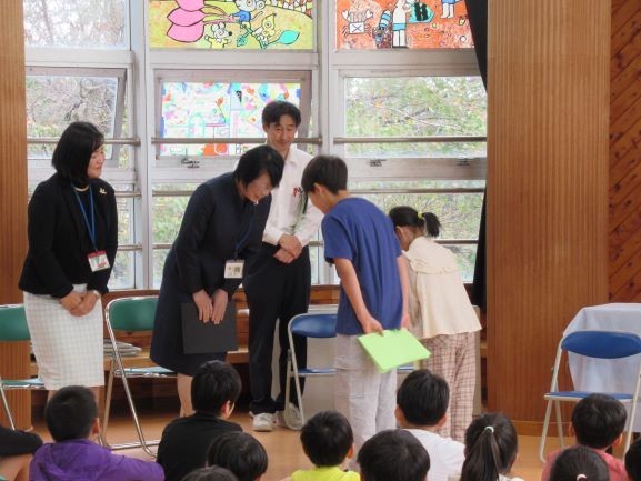 今日の1校時に令和7年度後期始業式を行いました。「抱負発表」では2年生と6年生の代表児童が後期に頑張りたいことを立派な態度で発表しました。その後、校長先生から「『自分や周りの人の命を大切にすること』、『一人一人が輝く三反田小学校を目指し、みんなで頑張ること』、『進んであいさつをすること』の3つを後期の目標として頑張っていきましょう。」とお話がありました。落ち着いた雰囲気の中で、一人一人が後期の生活や学習への意欲を高めることができた式になりました。後期も保護者の皆様と協力しながら児童たちを支援していきたいと思います。