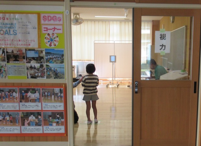 本日は、来年度入学予定者の就学時健康診断が行われました。就学予定の幼児は、保護者から離れて案内担当の先生に付き添われて、各検査を落ち着いて受けることができました。来年度入学してくるのが楽しみです。