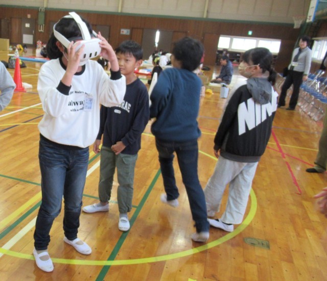 午前中は消防車見学、VRを使った災害体験、段ボールベットづくり、煙体験、水消火器体験等多くの体験活動を行いました。