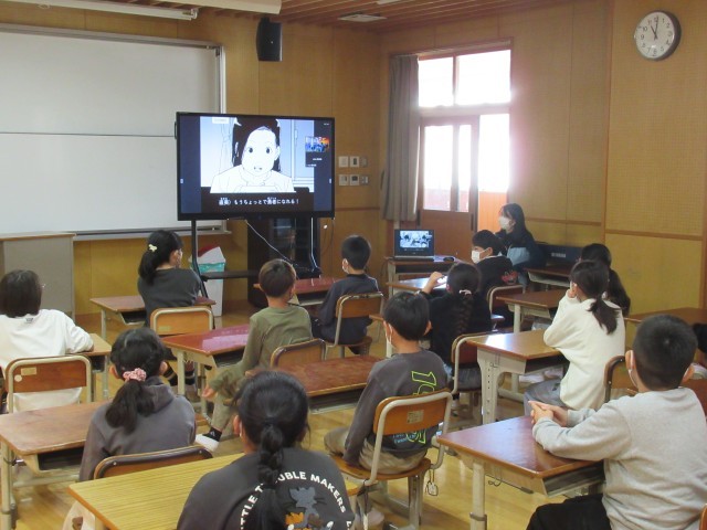 東京にいる講師の先生と学校をリモートで繋ぎ、お話を聞きました。