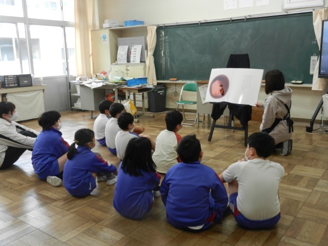 今日は、「三反田おはなしの会」の皆さんが来てくださり、朝の会の前に各クラスで読み聞かせをしてくれました。3年1組では、いつもとは違う大きな本で、子どもたちから驚きや喜びの声が上がっていました。『もりのかくれんぼう』は、森に隠れた動物たちを探す楽しさがあり、子どもたちは本を夢中で見つめていました。子どもたちは、月2回の「三反田おはなしの会」の読み聞かせを楽しみにしています。