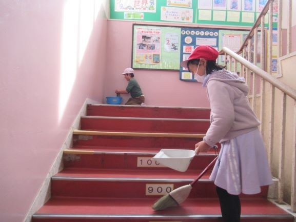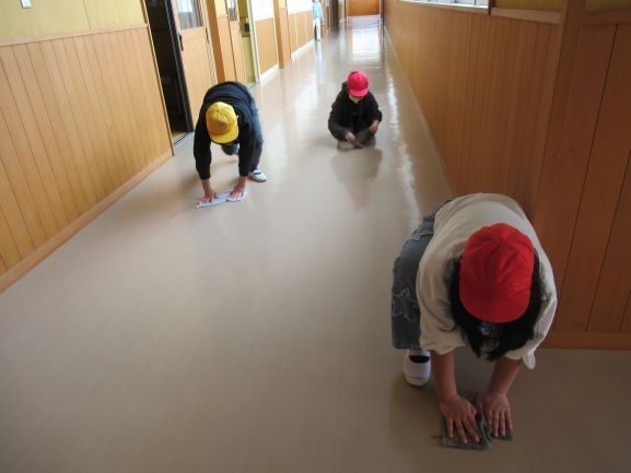 掃除をがんばる三反田っ子