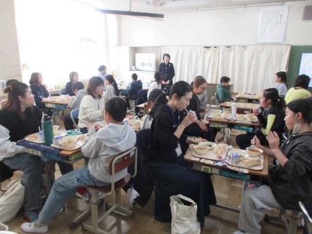 今日は、学習参観・懇談会と、5・6年生の親子給食を行いました。
