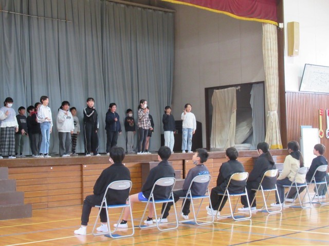 2年生から5年生まで、6年生に感謝の気持ちを伝えようと工夫を凝らした発表をしてくれました。