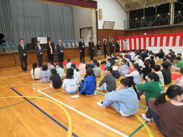 本日、新任式と始業式が行われました。新任式では、校長先生をはじめとする7名の新しい職員を旧職員と全校児童による温かい拍手でお迎えしました。