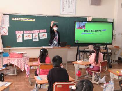今日は高野小学校の大和田栄養教諭に来ていただき、6年生と1年生の食育指導をしていただきました。
