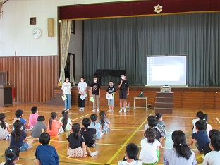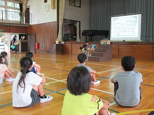 久しぶりに実施できた全校集会では、企画・放送委員会の5、6年生が、夏休みに行われた笑顔サミットの発表報告会を行いました。「みんなが通いたくなる学校を創ろう。」という願いのもと、校内で取り組んでいるさまざまな活動を紹介してくれました。代表のみなさん、素敵な発表をありがとうございました!