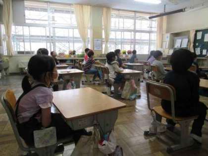 中休みに地震による建物倒壊に対しての避難訓練を行いました。