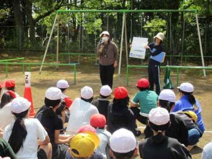 集合してから、担当の職員から避難避難の大切さのお話がありました。