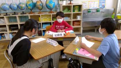 「きき手」「話し手」「記録係」に分かれ、友達のことを詳しく知るためのインタビューをしました。それぞれの立場での「きくこと」に気を付けながら、熱心にインタビューをしていました。