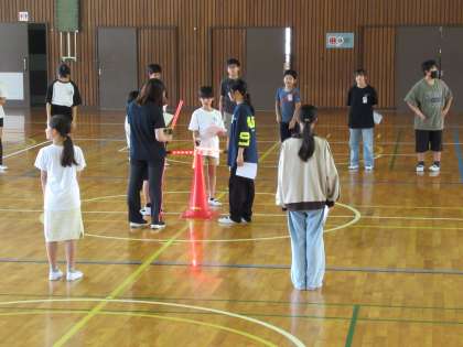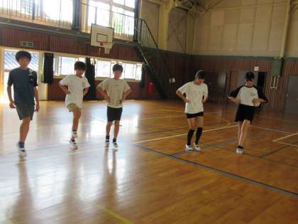 キャンプファイヤーの練習 公開日 2024/10/02 更新日 2024/10/02 その他 5・6年生の宿泊学習が二日後に迫ってきました。今日は、1日目の夜に行うキャンプファイヤーの練習を体育館で行いました。キャンプファイヤーは3部構成になっています。「第1部 迎え火のつどい」では、火の神がでてきます。「第2部 レクリエーション」では、「マイムマイム」と「ジンギスカン」を踊ります。「第3部 送り火のつどい」では、火の神が帰っていきます。歌とダンスで盛り上がりました。