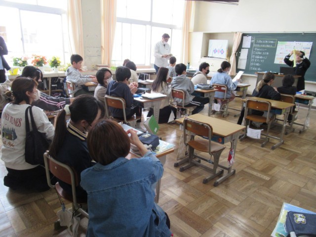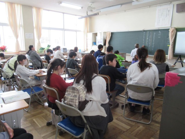 学習参観が1時間目に行われました。5年生は家庭科で、玉止めと玉結びを使った「手縫い」の授業でした。お家の人のアドバイスを受けながら熱心に行っていました。玉止めと玉結びは、慣れていないため苦戦しながらがんばっていました。4年生は国語「力を合わせてばらばらに」で、お家の人と共に与えられたテーマを相談しながら答えていました。親子で取り組んでいたたので大変盛り上がっていました。PTA総会も行われ、多くの保護者の出席のもと、滞りなく行われることができました。