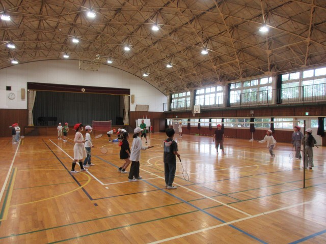 4年生は体育館でバドミントンとバレーボールを楽しんでいました。