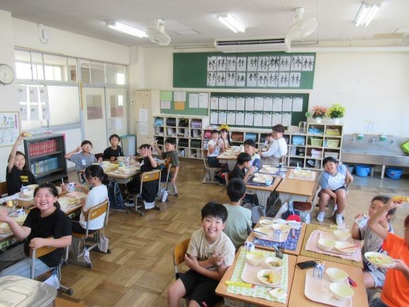 2時間目の理科の授業では、電池のはたらきについて学習しました。実験装置を使って、問題に対する自分の答えをしっかりと考えることができました。給食は、厚焼き玉子におひたし、じゃがいものそぼろ煮。みんなでおいしく食べました。ロング昼休みは、熱中症警戒アラートが発令されたため、企画委員の計画による縦割り班ドッジボール大会を延期。クラスをオンラインでつないで養護教諭から熱中症予防についての話を聞きました。