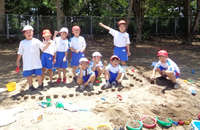 手や体の感覚を働かせながら、材料(砂や土)に進んで関わり、思い付いたことを友達と一緒にどんどん試して楽しむ姿が見られました。