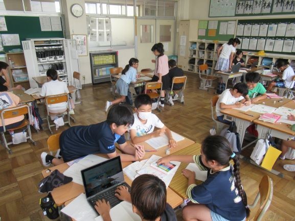 朝の時間、荷物を片付けたり、提出物を出したりした後は、自分たちから読書に入ることができました。1時間目、企画放送委員会から話があった、いじめ防止スローガン決めを行いました。それぞれが考えた案をクラス全員で確認しながら、スローガンを1つに絞りました。2時間目、国語の新聞を作ろうの学習では、割付や記事の内容の絞り込みなど自分たちで話し合いながら学習を進めました。
